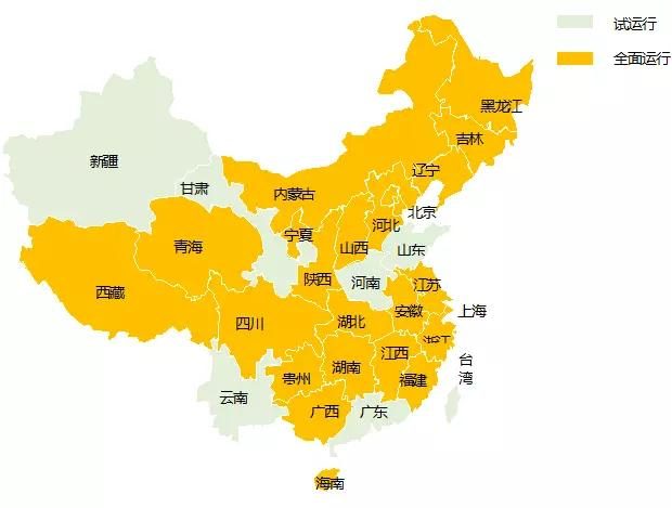 2018年,除了新疆、甘肅、云南、河南、山東等省在試運(yùn)行之外,其它省份均開始進(jìn)入正式執(zhí)行階段。